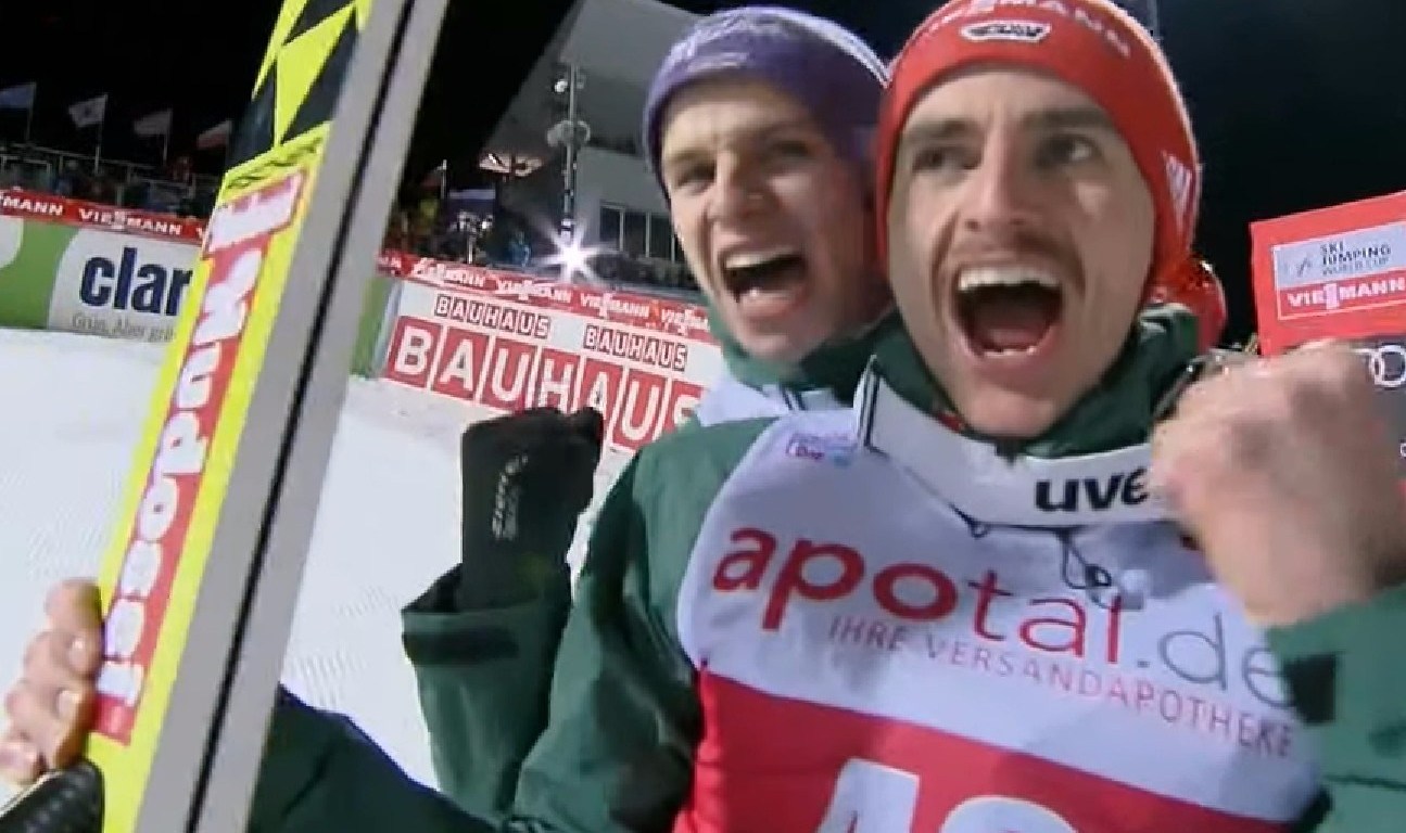A hétvége abszolút favoritja azonban Markus Eisenbichler volt, aki végül nem tudta hozni azt a formát, amit tegnap a kvaliban és a mai próbasorozatban mutatott. 129,5 méteres ugrása csak a 17. helyre volt elég. A német csapatból viszont remekül szerepelt Richard Freitag (135m 8.) és Pius Paschke (130m 5.), és ne feledkezzünk meg a korábban már említett Karl Geigerről sem, aki végül meg tudta nyerni az első sorozatot.