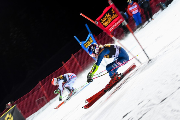 Az este folyamán Irene Curtoni már többször is bizonyította, hogy nagyon érzi a parallel különleges tűzését, és ennek megfelelően egészen a célvonalig volt esélye Shiffrinnel szemben, de végül érvényesült a papírforma és az amerikai jutott döntőbe. A másik elődöntőben a pálya elején Maren Skjøld még talán vezetett is, de a pálya végére nem tudta tartani Vlhová tempóját, így a norvég a bronzmeccsel vigasztalódhatott. Ez azt is jelentette, hogy a döntőben az első és második helyen kiemelt Shiffrin és Vlhová fej-fej melletti párharcát láthattuk, ami a győzelem mellett a szakági vezetésről is szólt.