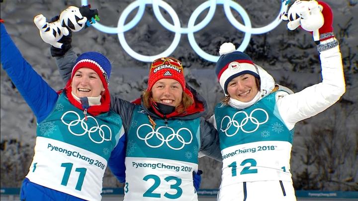 A hölgyeknél abban a tekintetben egyáltalán nem, hogy a tavalyi világbajnokság sztárja, Laura Dahlmeier nagy magabiztossággal diadalmaskodott. A német szupersztár hibátlan lövőteljesítményéhez remek futás társult, s mivel ellenfelei sorra buktak el a táblára célzás során, egy pillanatig nem forgott kockán élete első olimpiai aranya.