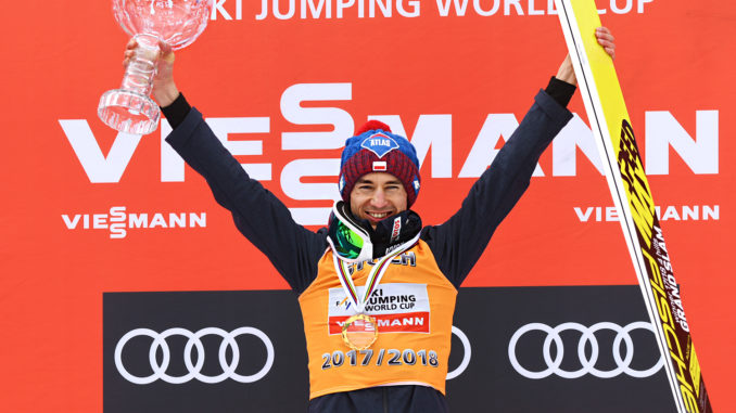 A pjongcsangi olimpia első száma a férfi egyéni volt. Itt az első sorozatban Hula, Stoch sorrend alakult ki. Wellinger viszont a második kör legjobbjával az aranyig menetelt, míg a két lengyel dobogóra sem állhatott. Forfang és Johansson lettek még érmesek. Nagysáncon már nem hibázott Stoch, és címet védve vált háromszoros bajnokká. Wellinger az arany mellé egy ezüstöt gyűjtött, míg Johannson ismét bronzzal távozott. Norvégia megkoronázta szezonját, és története során először hódította el az olimpiai bajnoki címet csapatban. Második helyen a németek, a harmadikon a lengyelek végeztek.