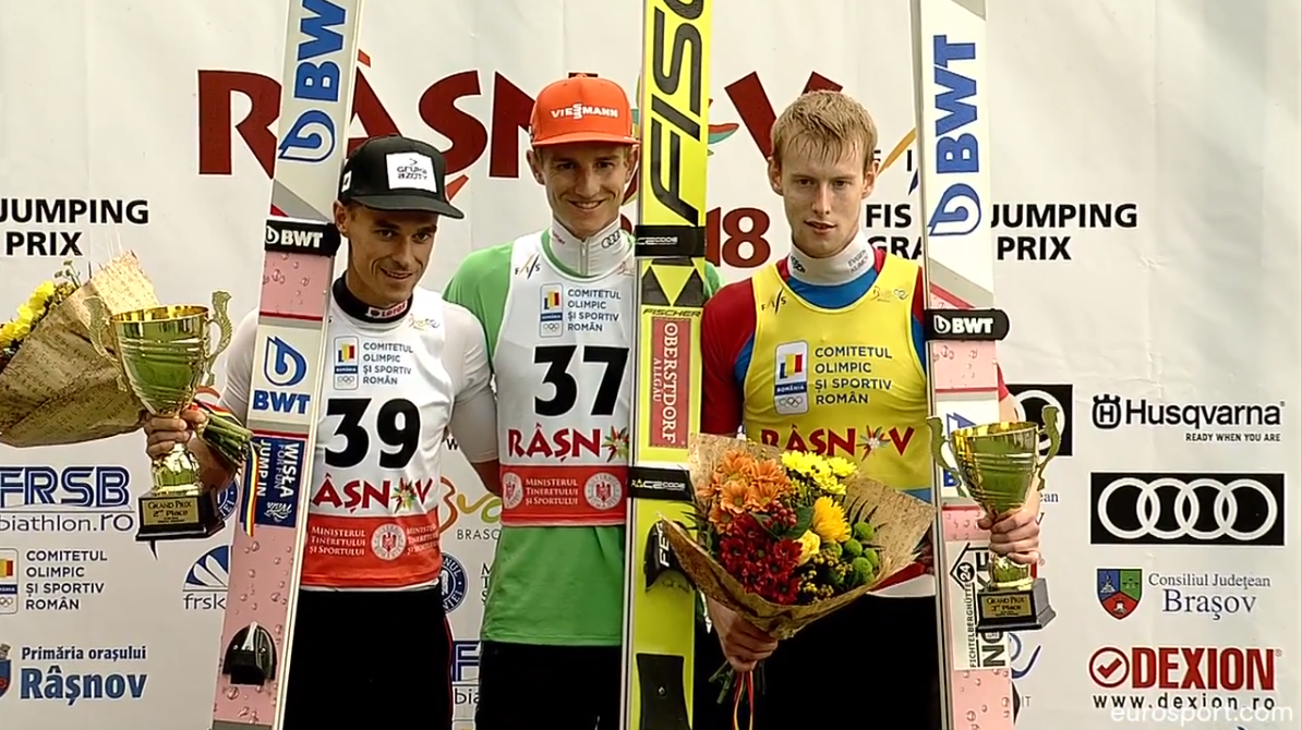 Karl Geiger nyerte a Nyári Grand Prix sorozat történetének első romániai versenyét megelőzve Piotr Zyłat, valamint az összetett éllovas Evgeniy Klimovot, aki ezzel a 3. hellyel nem csak megőrizte a sárga trikót, de egy nagy lépéssel közelebb is érezheti magát a végső sikerhez.