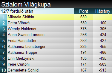 Egyre inkább körvonalazódik, hogy a Shiffrin-Vlhová-Holdener trió teljesen más szintet képvisel idén szlalomban. Petra Vlhová (3.) nem félmásodperces elmaradásokkal érkezett, mint az előző versenyzők. Két kapuig vezetni is tudott, végül az utolsó pár kapura lassult le. Ha az előbb még kiemelkedő trióról beszéltünk, arra MikaelaShiffrin (1.) egyből rá is cáfolt: az amerikai korábbi évei magabiztosan agresszív stílusával minden egyes trükkös részt szinte tökéletesen síelt, és több mint egy másodperccel megverte még Holdenert is.