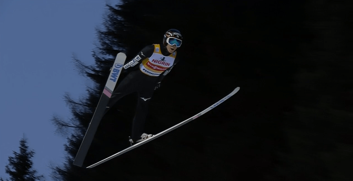 Ugyanekkorát ugrott Piotr Zyła (7.) is, de mivel nála kicsit enyhébb volt a hátszél, csak a hatodik helyre tudott vele bejönni. Ezzel már csak Ryoyu Kobayashi (1.) ugrása volt hátra az első sorozatból, aki nincs rá jobb szó, tönkreverte az egész mezőnyt. A japán zseni ugyanis kihasználva, 135 méterig vitorlázott ugyanis, ezzel 16,4 pontos előnyből várhatta a folytatást. A történeti hűség kedvéért azt persze hozzátehetjük, hogy Kobayashinak kisebb hátszél fújt, mint a többieknek, de KO volt ez így is.