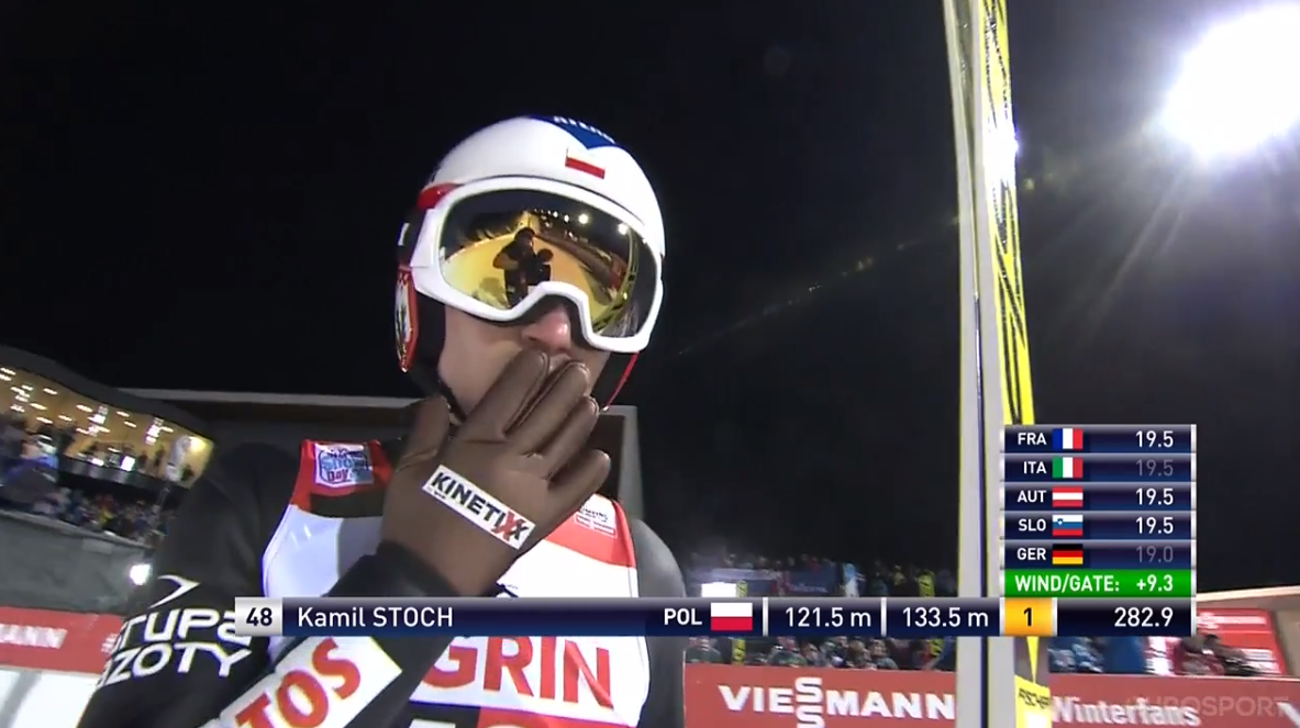 De nem csak egy ugró képviselte ma a lengyel színeket a pódiumon, ugyanis Dawid Kubacki (2.) egy 131,5 méteres repüléssel meg tudta előzni Stochot, így az eredményhirdetésnél ő is felállhatott a pódiumra, méghozzá Bischofshofenhez hasonlóan ismét a második fokára.
