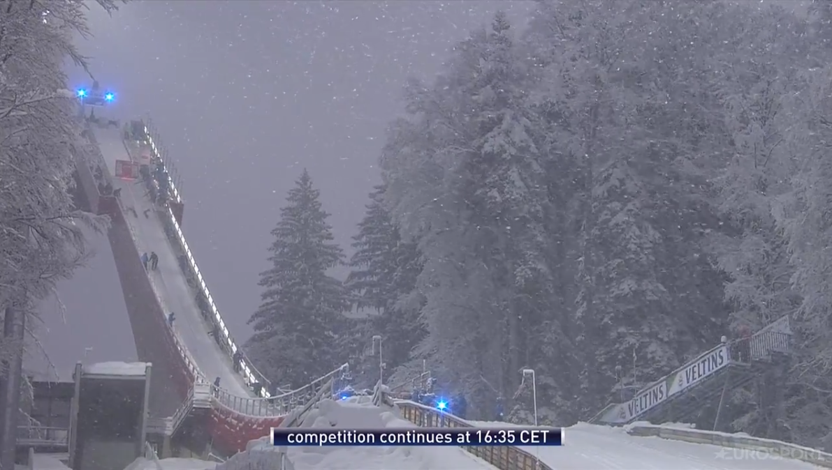 Az időjárás ma messze nem volt olyan kegyes az ugrókhoz, mint az első két versenynapon, ugyanis szakadó hóeséssel és időről-időre megerősödő széllel küzdött a mezőny és a szervezők is.