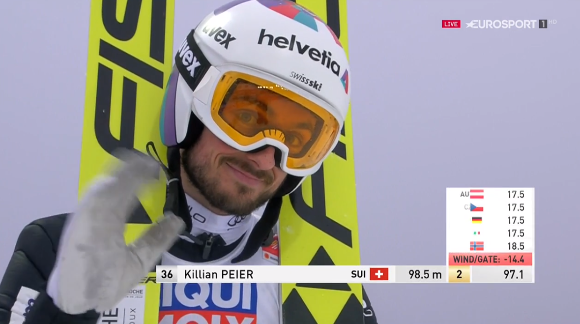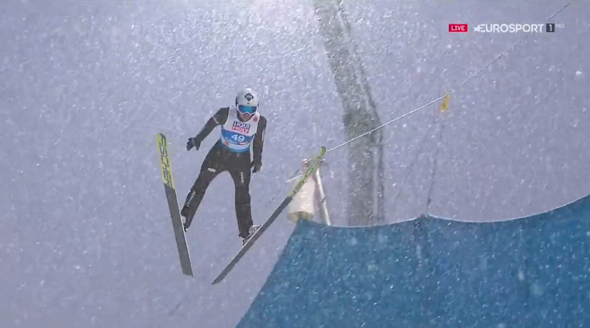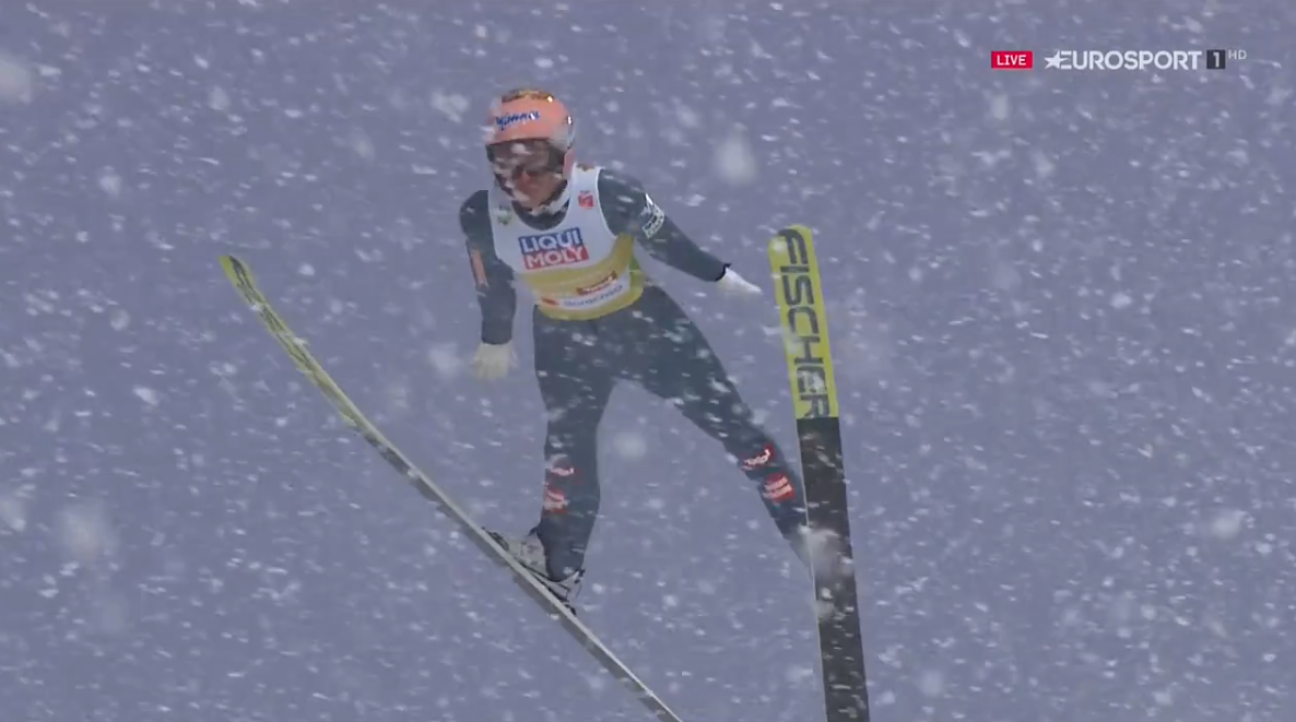 Robert Johansson (12.) előtt változtatott is a zsűri, így a bajuszos norvég már a 13-as kapuból indult, ahonnan 97,5 métert repült, ezzel tizedik volt a pillanatnyi rangsorban. Következett Dawid Kubacki (27.), aki az ígéretes edzésteljesítmény ellenére csak 93 métert ugrott, ezzel úgy tűnt – és ekkor vélhetően nem volt ember, aki ne így gondolta volna – elszállnak az esélyei az éremszerzésre. Piotr Zyła (33.) sem remekelt egyébként, sőt, 90,5 méterrel ő is a nagynevű kiesők táborát gyarapította.