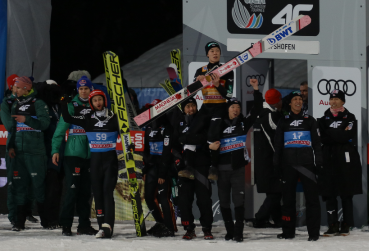 Hozzátéve, hogy a százszázalékos mérleghez egy minimális szerencsére is szüksége volt Kobayashinak, ugyanis az első két fordulóban Oberstdorfban és Garmisch-Partenkirchenben a hazai sáncon ugró Markus Eisenbichler teljesen egyenrangú ellenfele volt és csak nüanszokkal maradt el mögötte. Az összetett így tulajdonképpen csak a sorozat osztrák felén dőlt el, ugyanis Eisenbichler Innsbruckban 13., Bischofshofenben pedig 5. lett csak, miközben Kobayashi két újabb fölényes győzelmet aratott, így végül 60 pont feletti előnnyel győzött. Ettől függetlenül a szomszédba szép számban átruccanó német szurkolók sem lehettek elégedetlenek, ugyanis két versenyzőjük is dobogóra állhatott, hiszen Eisenbichler mögött Stephan Leyhe lett a harmadik összetettben. A németeken kívül kiemelhető még Stefan Kraft teljesítménye is, aki a visszafogott szezonkezdést követően ekkor kezdett formába lendülni, és a négyből három versenyen is dobogós volt. Az egyetlen “szépséghiba” az újévi verseny volt, ahol Kraft meglepetésre nem jutott túl az első sorozaton, így a turné összetettben nem ért el jó eredményt.