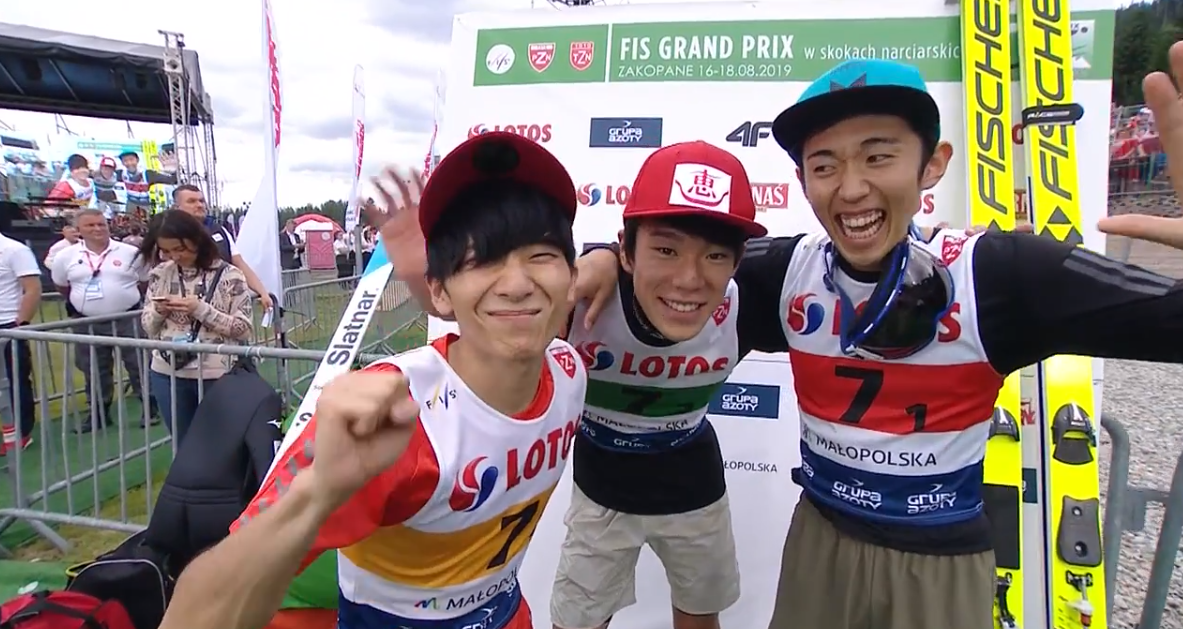 Kiegyensúlyozott teljesítményüknek köszönhetően a Ryoyu Kobayashit továbbra is nélkülöző japán csapat meglepte a győzelemre készülő házigazdákat Zakopaneban, és húsz év elteltével nyertek ismét csataversenyt a Nyári Grend Prix-n. A dobogó második fokára Lengyelország, a harmadikra Norvégia állhatott fel.