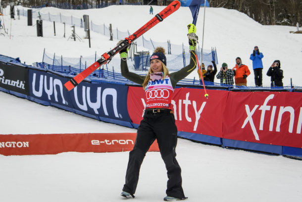 15.000 szurkoló várta hihetetlen hangulatot teremtve Mikaela Shiffrint (1.). Az amerikaiak helyi hőse meg is hálálta a bíztatást. Visszafogott kezdést követően hatalmas sebességre kapcsolt és onnantól egy másik kategóriát képviselt. 1,13 másodperces előnyét a célig megkétszerezte, két másodperc feletti előnnyel nyerte meg hazai szlalomjét.