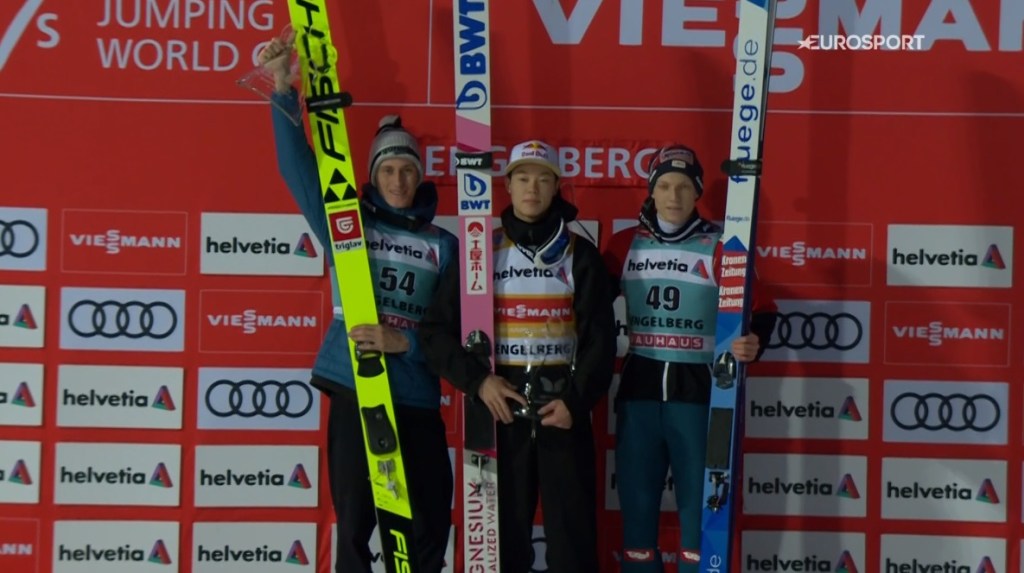 Ryoyu Kobayashi győzelmével zárult az engelbergi második verseny, amely meglehetősen zaklatottra sikeredett a folyton változó szél miatt. A második helyre Peter Prevc jött be, míg a harmadik helyen Jan Hörl zárt, aki ezzel megszerezte élete első Világkupa győzelmét.