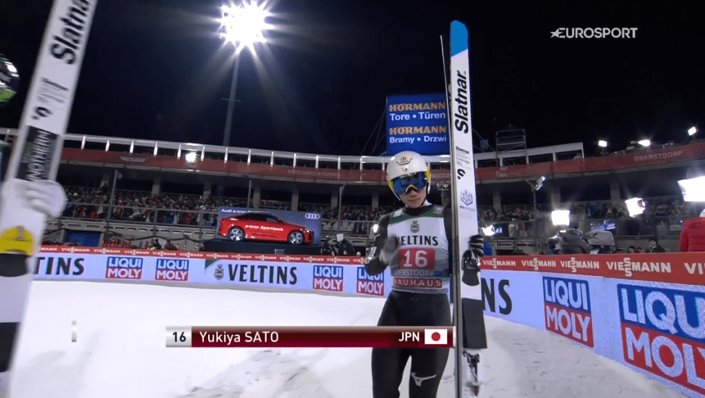 A zsűri egyébként ismét módosított, így Robert Johansson (8.) a 11-es beülőből futhatott neki a második ugrásának, amivel 130,5 méterig jutott, ami nem volt elég Sato megelőzéséhez. Philipp Aschenwald (129,5 m 6.) ugyanakkor szerencsével járt, így a kilencedik helyről érkező osztrák átvette a vezetést.