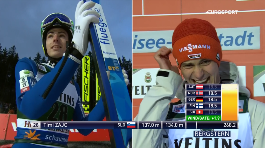 Ez főleg annak volt köszönhető, hogy a hajrára csak egy nagyon enyhe szembeszele maradt mindössze a versenyzőknek, így igazán könnyű dolga senkinek nem volt a végén, kiváltképp Timi Zajcnak (3.) nem, aki ennek ellenére 134 métert tudott ugrani, ami elég volt nem csak a pillanatnyi elsőséghez, de végül dobogóra is állhatott vele.