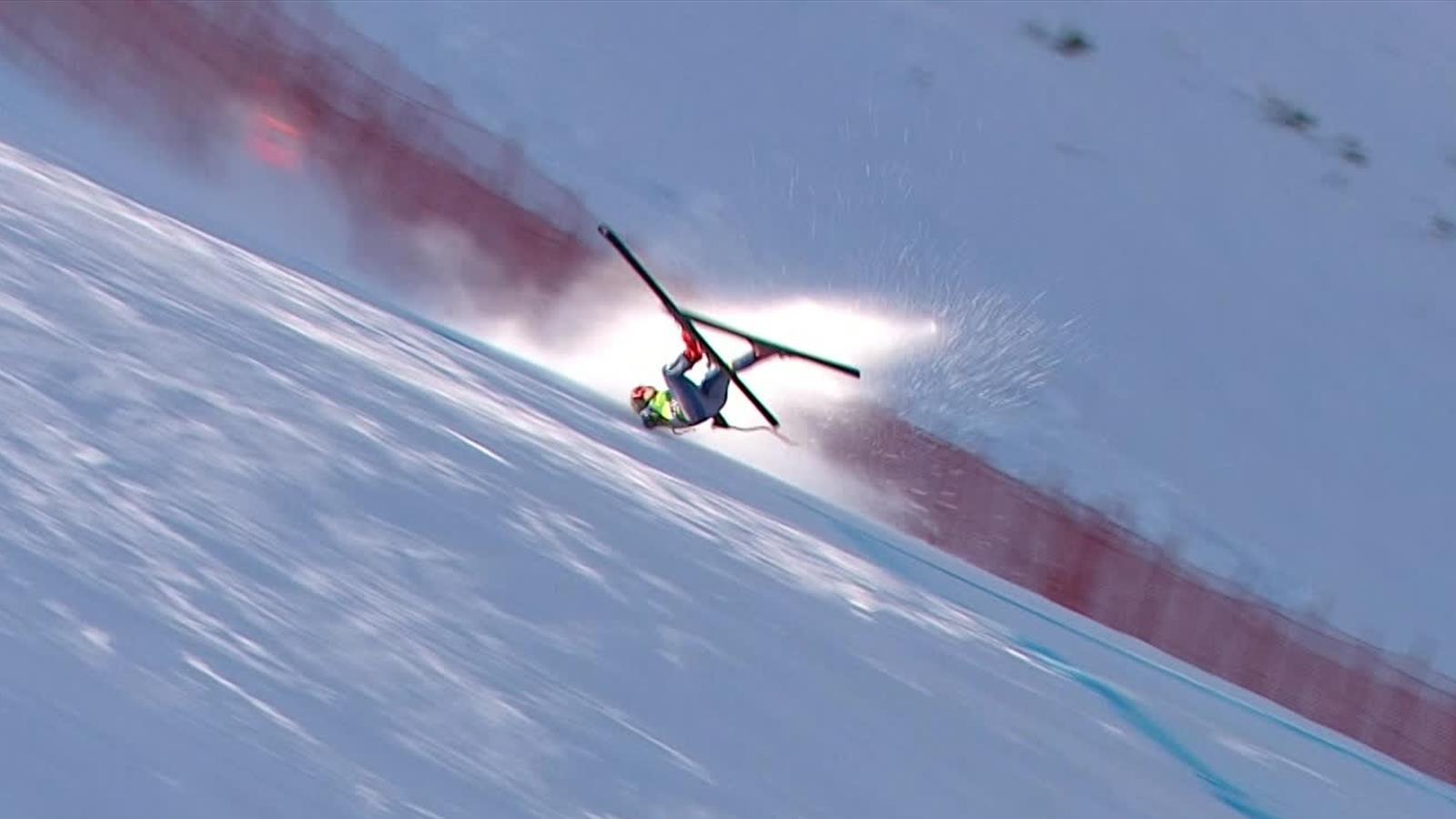 A lesiklás ötkarikás címvédője még rosszabbul járt. Sofia Goggia két, viszonylag erős szektor után esett egy hatalmasat. Rendesen bevágta magát, de a vizsgálat nem jelzett semmiféle komolyabb sérülést. Orvosai tanácsára ugyanakkor így is kihagyja a szombati lesiklást. Romane Miradoli (7.) tálalásában láthattuk az első életképesnek tűnő menetet. Vélhetően az előtte indulók hibáiból is sokat tanult, mindenesetre a jó másodpercnyi előny önmagáért beszélt. Különösen úgy, hogy a szakágat vezető Corinne Suter (14.) is jócskán elmaradt a franciától. Végig rossz tempóban haladt, a mélyről vett ívek belefékezésekkel álltak csak össze.