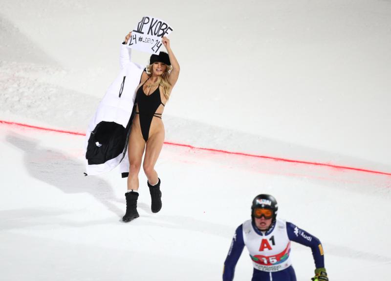 Alex Vinatzer (6.) idegesen síelt, de nagy előnye ezt egész sokáig elbírta. Ezután viszont hatalmas közjáték szemtanúi lehettünk: egy fürdőruhás nő Kobe Bryantre emlékező transzparenssel átfutott a célvonalon, épp mielőtt az olasz is odaért volna, ezzel korábban megállítva az időmérőt. Így elsőre az fél másodperces előnyt jelzett, amit hatalmas üdvrivalgással ünnepelt Vinatzer. Idejét természetesen gyorsan korrigálták saját valós eredményére. A vezető ülésben ülő Noël hatalmas nevetés közben próbálta jelezni az olasznak, nézzen ismét a kijelzőre. Ezután már ketten poénkodtak a nem mindennapi szituáción. A Bluewin svájci oldal információi szerint egyébként a fürdőruhás hölgy nem első alkalommal vonta magára a figyelmet. Az oldal alapján arról a Kinsey Wolanskieól lehet szó, aki a tavalyi Bajnokok Ligája döntőn is fürdőruhában szaladt be a pályára.