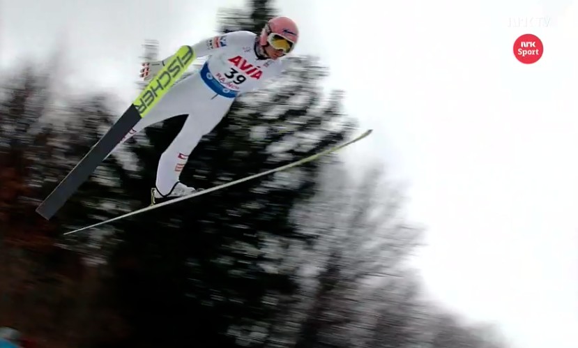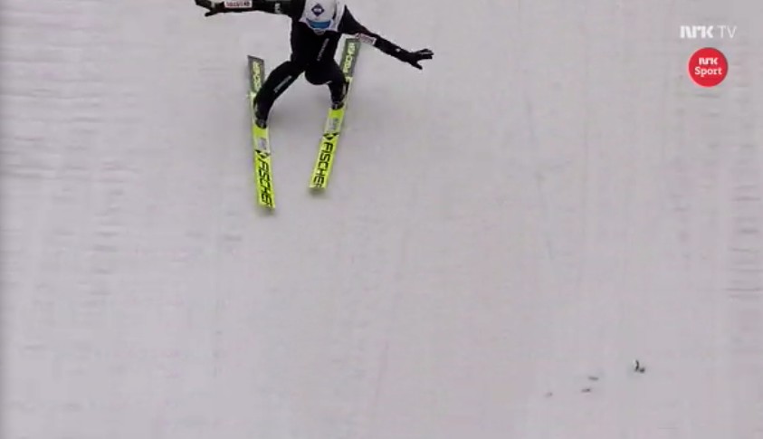 Daniel André Tande (9.) 96 méteres ugrásával nem lehetett teljesen elégedett, ugyanis csak 18-as pontokat kapott a zsűritől. Peter Prevc (4.) viszont szinte tökéletes ugrást produkált 98,5 méterével és a 19-es átlaggal, amit a zsűritől kapott.