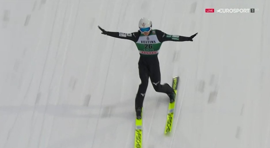 Anze Lanisek egy szép ugrást bemutatva (124 m) is visszacsúszott és csak a harmadik helyre érkezett. Mint az tudjuk Piotr Zyla mindig okozhat pozitív meglepetést, nem volt ez máshogy ezen a versenyen sem, hiszen a 127,5 méteres második ugrásával a legjobban teljesítő lengyel versenyző volt.