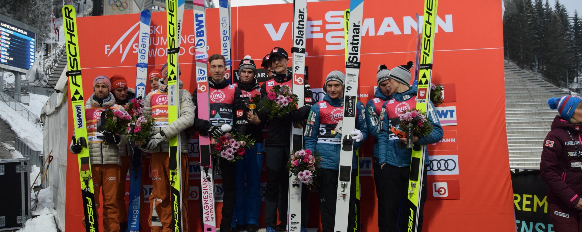 A világ egyik legszebb sánca, ritkán tapasztalt jó hangulattal. Jellemzően ezt írhatjuk az oslói verseny kapcsán minden évben – kivéve most. A koronavírus miatt nézők nélkül engedélyezték csak a versenyt a Holmenkollenen, ahol a hazaiak ugrói igyekeztek kárpótolni az otthon marad szurkolóikat – magabiztosan és fölényesen nyertek a németek előtt. A harmadik helyre az utolsó ugrás előtt még hárman is pályáztak, de ezek egyike sem volt Ausztria együttese.