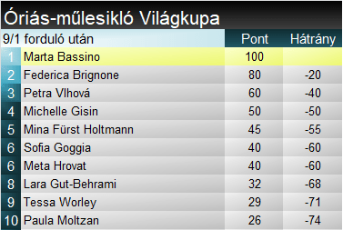 Marta Bassino másodjára győzött a Világkupában, legutóbb a tavalyi killingtoni óriáson ért fel a csúcsra. Az egykori junior-világbajnoknő négy másik szakágban is állt már dobogón, s idén akár az összetett alakulásába is beleszólhat. Tavalyi 5. helyezése sokat ígérően hat.