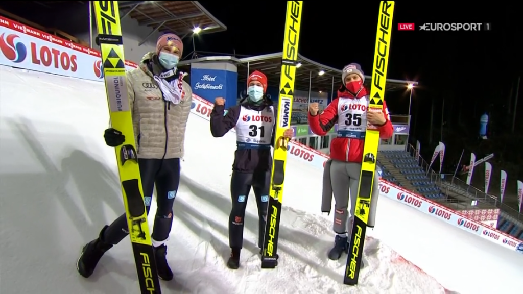 Markus Eisenbichler (3.) jó formában kezdte a szezont, ez már két nap után bizonyossá vált, őt a nehéz körülmények sem tudták megtréfálni. A sorozat leghosszabb ugrását mutatta be, 137,5 métert, amivel majdnem 10 ponttal átvette a vezetést az akkor még vezető Granerudtól. Michael Hayböck (13.) szintén remekelt Wisłán a hétvégén, a versenyen 124,5 méterig szállt. Daniel Huber (2.) 138,5 méterével fél méterre megközelítette a sáncrekordot, tette mindezt a kettős beülőből ugorva!