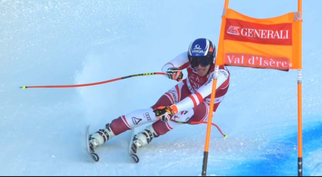 Kjetil Jansrud (20.) remekül kihasználta Caviezel hibáit: az elején fél másodperccel vezetett, a lejtő felénél már 8 tized állt a neve mellé. A viszonylag ütőképes sebesség ellenére rohamtempóban esett vissza a norvég előnye. Kanyarívei jócskán elmaradtak határozottságban a svájcitól látottaktól. Öt, azaz 5 századdal kikapott tőle. Daniel Danklmaier (34.) becsülettel beleállt a lejtőbe, közben sok-sok hibát elkövetett. Nem egyszer túlhaladt a kék vonalon, senkit nem előzött meg.