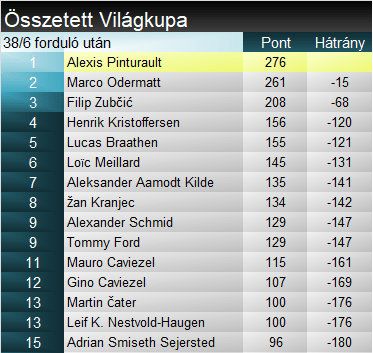 Ezek után muszáj volt kivárni a végkifejletet! Kanadai részről kevés versenyképes lesikló marad a palettán, az egyikőjük, Jeffrey Read (43-assal a 26.) legalább pontot szerzett. A másik, Brodie Seger komoly balesetet úszott meg, léceitől megfosztott teste egy hajszállal kerülte el a célvonalat határoló kaput. Emiatt egy rövid időre felfüggesztették a versenyt, szegény Daniel Hemetsberger (29.) nagy bánatára. Az osztráknak így kétszer kellett nekiesnie a pályának, a pontszerzés így bravúros. Rajta kívül még az előző szlovén lesikló sikert szállító Boštjan Kline (57-essel a 28.) szállított pontokat. Cameron Alexander, egy harmadik kanadai sajnos biztosan nem úszta meg sérülés nélkül esését.