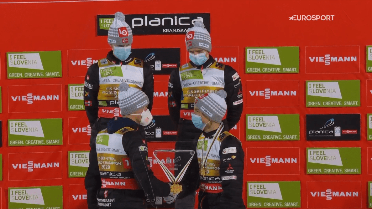 Ami így Norvégiáé lett, így azok után, hogy Granerud tegnap elkeseredésében húzta szemébe sapkáját, ismét láttunk egy hasonló jelenetet, csakhogy ezúttal az öröm könnyei csilloghattak Alex Stöckl szemében az edzői toronyban, hiszen nem kis részben az ő zseniális húzásával a norvég csapat sorozatban harmadszor lett csapatban sírepülő világbajnok, míg Horngacheréknek ezúttal meg kellett elégedniük az ezüstéremmel. Egyébként pedig soha rosszabb csapatversenyünk ne legyen!