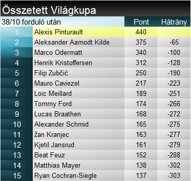 | 5. Alexis Pinturault | Franciaország | 48.12 | + 0.78 |