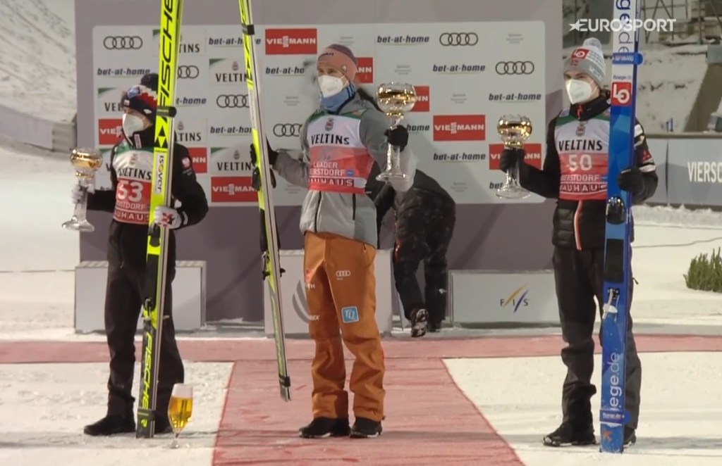 Szoros volt a vége, de végül hazai pályán Geiger győzedelmeskedett, a dobogóra pedig Stoch és Lindvik állhattak fel mellé. A VK élmenői is jól mentek, Granerud a 4., Eisenbichler pedig az 5. lett, amivel 16,8 ponttal van lemaradva Geigertől a Négysánc összetettjében.
