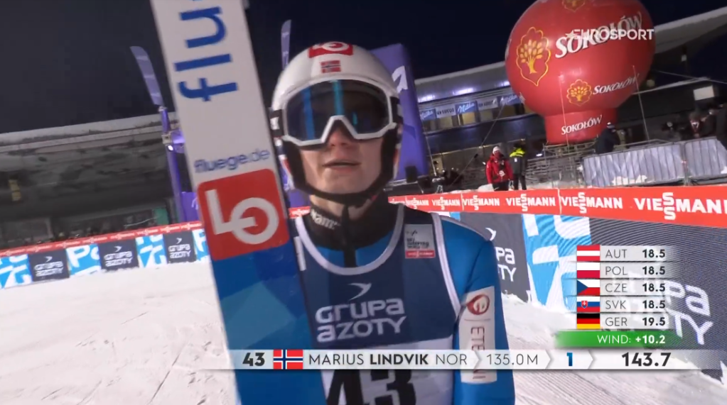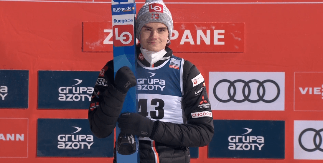 Marius Lindvik nyerte a vasárnapi versenyt Zakopaneban, miután egy hatalmas második ugrással leszorította az első sorozat után még vezető Anze Laniseket az első helyről. A dobogó harmadik fokára Robert Johansson állhatott fel, míg az összetett pontverseny legjobbjainak ezúttal nem sok babér termett a Tátra lengyel oldalán.