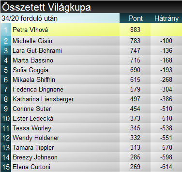 A szakági pontversenyben még mindig nagyon vezet az olasz, kisebb fajta lavinával érne fel, ha innen bukná. Összetettben ugyanakkor mind érdekesebb a helyzet. Vlhová ingadozóbb teljesítményével Gisin mellett még egy svájcit magára rángatott. Egyáltalán nem kizárt, hogy Lara harcba szállhat idén az összetettért.