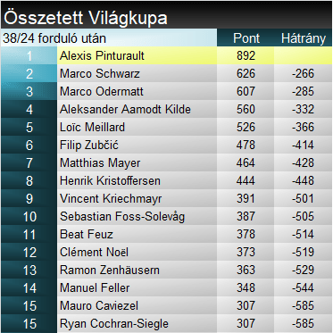 Toronymagasan vezeti a szakágit, könnyen lehet, hogy már holnap bebiztosítja kristálygömbjét. Összetettben továbbnövelte előnyt Pinturault. Reálisan csakis egy sérülés akadályozhatja meg abban, hogy márciusban megnyerje az idényt.