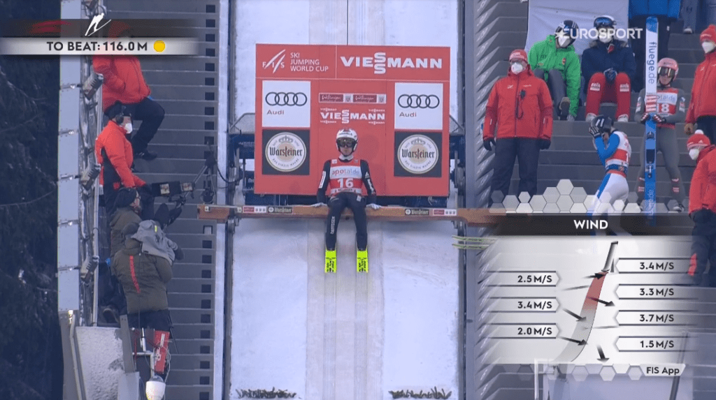 A tegnap remeklő Bor Pavlovcic (15.) ezúttal 129 métert ugrott, ezzel az ötödik helyre jött be, Michael Hayböck (41.) viszont kiérdemelhetné a nap pechvogele címet, ugyanis azok után, hogy egy jó negyedórát üldögélt a toronyban, jobb híján egy pokróccal védekezve a hideg ellen, amikor végre lejöhetett kapott egy jókora hátszelet, így nem sok esélye volt érdemlegeset alkotni.