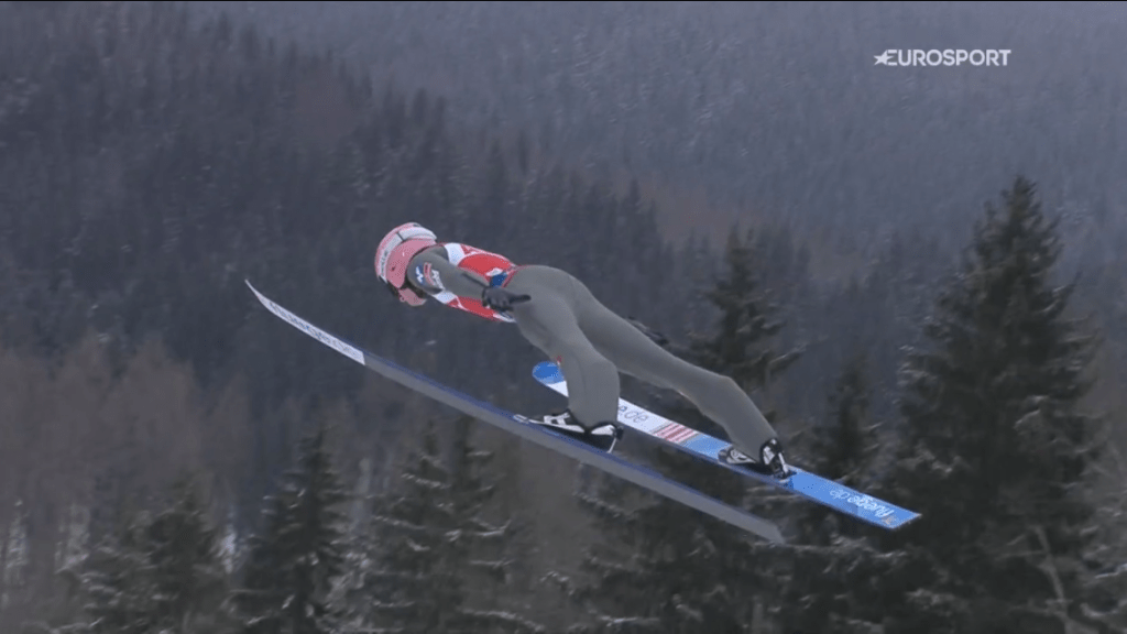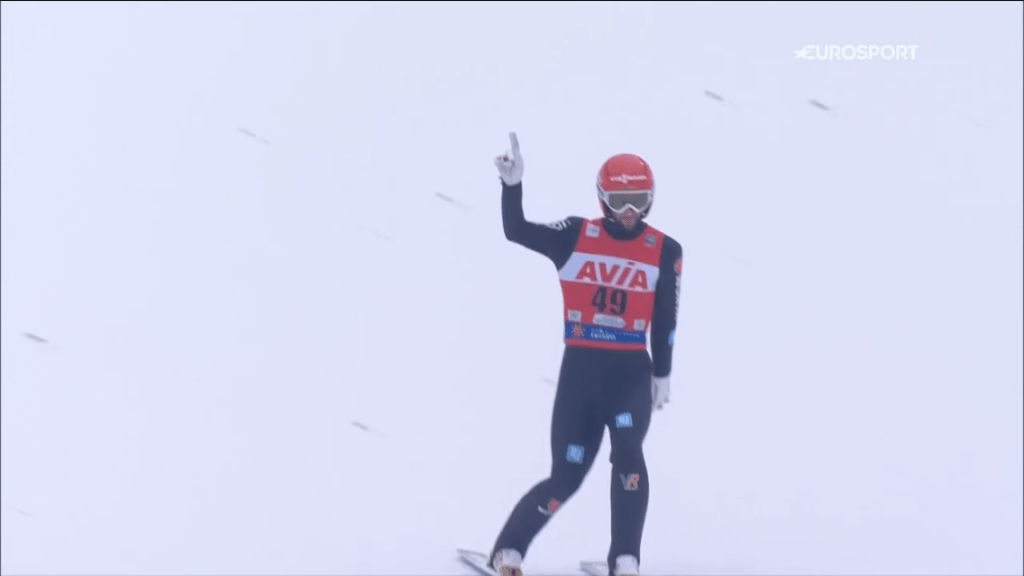 A lengyelek nem szerepeltek túl acélosan, Piotr Zyla előtt mindössze Dawid Kubacki (138,5m 12.) állt az akkori első tízben, egészen pontosan a 9. helyen, így nagyon kellett a lengyelek két legjobbjának szereplése. Zyla (25.) azonban mindössze 128 méterig szállt, amivel épphogy bejutott a második körbe. Kamil Stoch (4.) viszont hozta a kötelezőt, 138 méterével, gyönyörű stíluspontjaival és a beülő kompenzációval bejött a második helyre, 1 tizeddel elmaradva Satotól. Markus Eisenbichler szintén 138 méternél fogott talajt, a gyenge szélkompenzációk miatt ezzel az élre is ugrott.