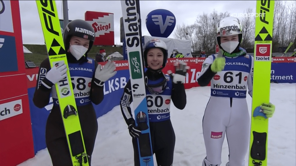 Utolsó napjához érkezett le a hinzenbachi hosszú hétvége, mely utolsó versenyre Vörös Virág is kvalifikálta magát. A harmadik verseny végül Sara Takanashi győzelmével zárult, míg a dobogóra Nika Kriznar és Silje Opseth állhattak fel.