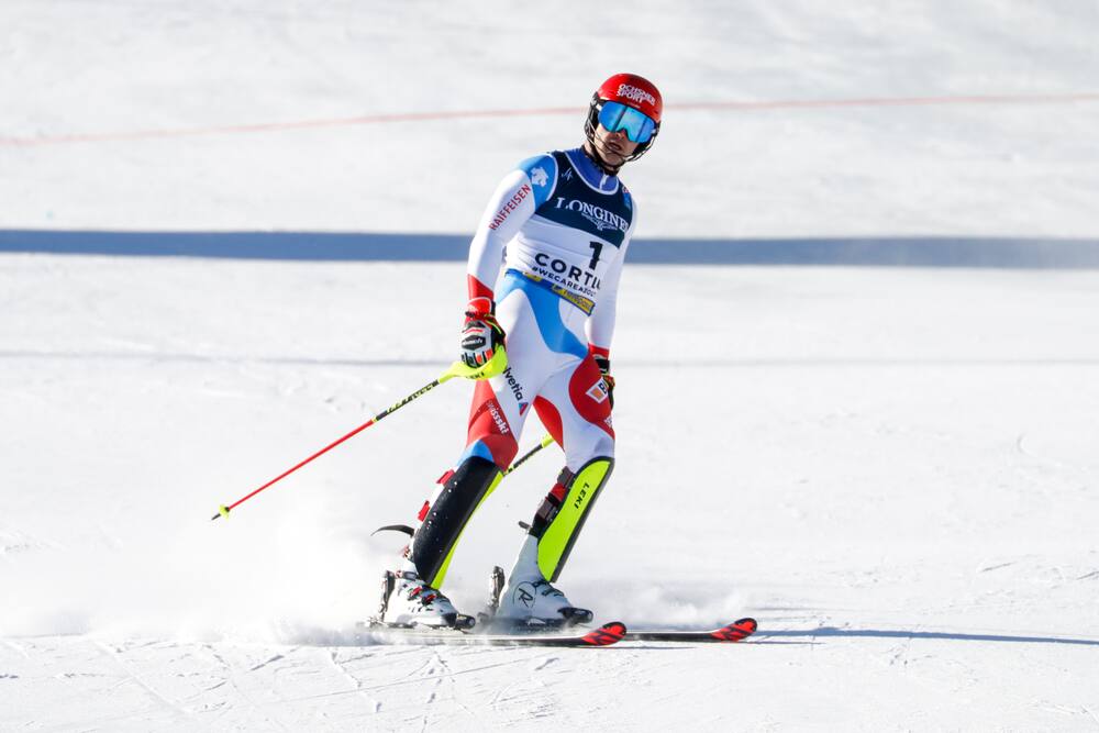 Marco Schwarz (5.), mint a szlalomosok Világkupájának listavezetője, nem kérdés, melyik oldalról közelíti meg a kombinációt. Agresszíven kezdett, bátor íveket húzott, az időmérésnél pedig topsebességgel repesztett. Alig kapott 3 tizedet a franciától, ami azon nyomban a versenyszám esélyesévé léptetette elő. Justin Murisier (20.) óriás-műlesiklásban nagyszerű, szlalomban komoly eredményei nincsenek, vagyis számára délelőtt dőltek el a lényegi kérdések. Jelesül, hogy az éremszerzésről lemondhat. Komoly ritmikával kezdett, ám a sokakat megtréfáló letörésnél méterekre vágódott a kék vonalon túlra. Bőven másodpercen túli hátrány lett érte jutalma.