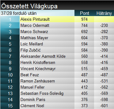 A szakágiban élesedett a küzdelem, hárman vannak száz ponton belül, miközben még három versenyt rendeznek a télen. Ami az összetettet illeti, nem látszik, ki tudná igazán próba elé állítani Pinturault-t a hátralévő kilenc állomáson.