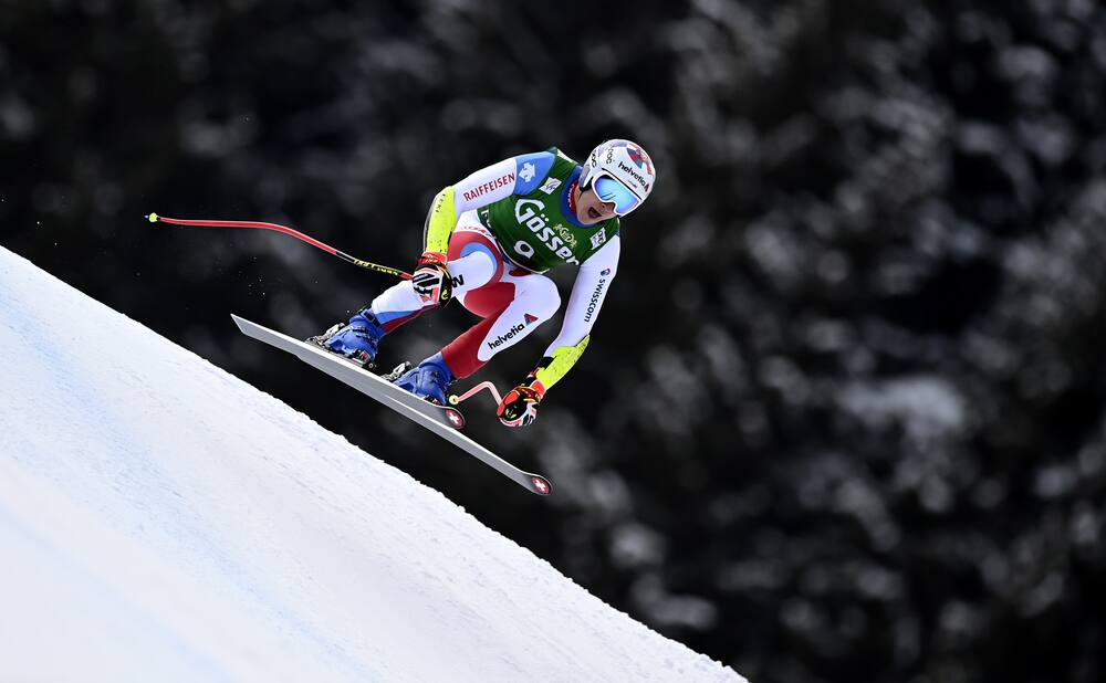 Marco Odermatt (1.) a trükkös ugratót remekül síelte meg, szinte sebességet sem vesztett és az ívválasztással sem volt probléma. Így megmaradt lendületét vitte is tovább, nemcsak sebességben, de időelőnyben is. A pálya alján pedig még egy sebességfokozattal feljebb tudott kapcsolni, azon a szakaszon senki nem tudott a közelébe sem kerülni. Ilyen előzményekkel nem volt meglepetés, hogy toronymagas előnnyel vette át a vezetést.