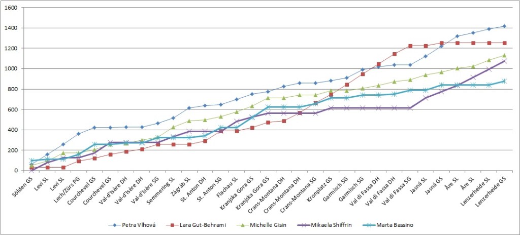 Január végére már-már azt gondolhattuk, Petra Vlhová meglepően simán fog összetettet nyerni. Shiffrin az előzetes várakozásokkal szemben teljesen kihagyta a gyorsszámokat, és a technikaiakban is elmaradt a dominancia; a címvédő Brignone közel sem volt olyan formában, mint tavaly; Bassino az óriásban szerzett győzelmei mellett nagyon sokszor maradt pont nélkül a többi számban; míg a decemberben parádésan síző Gisin kissé kipukkadni látszott a világbajnokság kezdetére. Így minden előjel abba az irányba mutatott, hogy a minden versenyen rajthoz álló Vlhová már könnyedén veszi az utolsó versenyeket és meglesz a hőn áhított nagy kristálygömb. Időközben érkezett azonban Lara Gut-Behrami, és lényegében surranópályán nemcsak szép csöndben beérte a szlovákot, de a világbajnokság után át is vette a vezetést az összetett élén. Vlhová ugyan mutatta a fáradtság jeleit, de az utolsó versenyekre még meg tudott újulni, így végül megszerezte Szlovákia történetének első összetett címét. Lássuk, kicsit részletesebben, kik voltak a főszereplők!