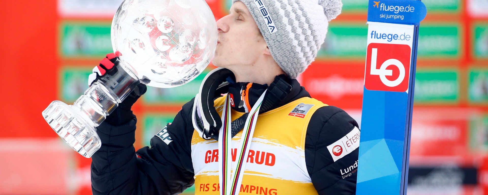 Planicán ugyan nem ünnepelhetett egyszer sem a dobogón, de végre a magasba emelhette a kristálygömböt.