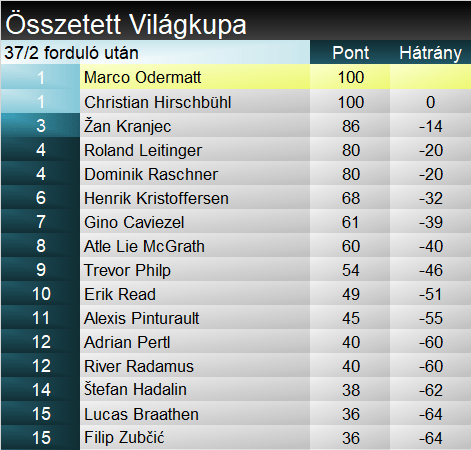 Christian Hirschbühl az osztrák szlalomválogatott pechvogele: évek óta mindig épp csak kimarad a VB-keretből. Hullámzó teljesítménye most is megmaradt, de két hatalmas fordítás ezúttal karrierje első dobogós helyezését érte, ami egyből győzelmet is jelentett. Dominik Raschnert óriásból ismerhetjük, de a második futamokban sem stabil résztvevő. Parallelből viszont voltak már villanásai, ma pedig kvaligyőzteshez méltó teljesítménnyel szerezte meg karrierje első dobogóját. Atle Lie McGrath az egyetlen, aki a hétvége hat dobógósa közül nem először ért el ilyen előkelő eredményt. A norvég a tavalyi sérülése előtt az Alta Badia-i óriáson szerzett már egy második helyet.