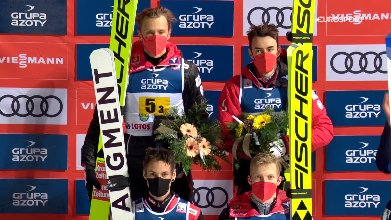 A szélnek is köszönhetően igen izgalmasra sikerült a szombati csapatverseny Wisłan, amelyen a nyolc ugrássorozat mindegyike után másik ország vezette a mezőnyt. A legjobbkor, azaz a verseny végén az osztrákok álltak az élen, akik mögött mindössze három tizeddel lemaradva Németország lett a 2., míg az utolsó előtti ugrások után még vezető Szlovénia a 3.