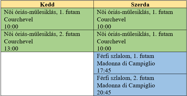 Kora délután még a második óriás-műlesiklást rendezték meg Alta Badián, de a Világkupa dübörög tovább, még Karácsonyig három versenyre kerül sor. A hölgyek kétszer csapnak össze óriásban, a helyszín pedig a 2023-as világbajnokság, ezzel együtt a márciusi VK- finálé házigazdája, vagyis Courchevel lesz. Az előre tervezett futamokon kívül itt pótolják a Killingtonban elmaradt óriás. A férfiak pedig szerdán folytatják kirándulásukat a Dolomitokban, mégpedig a Madonna di Campiglión esedékes szlalommal.
