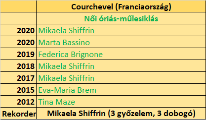 Ez idő alatt Mikaela Shiffrin és az olasz lányok vadászterületeként ismert a Stade Emile-Allais, de az első győzelmet mégsem ők, hanem az épp rekordidénye első felét taposó Tina Maze söpörte be 2012-ben. Szegény Worley-nak mindezidáig nem jött össze az első siker, pedig négy dobogóját senki más nem tudta megismételni.