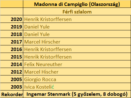 A szerdai két futam a 3-Tre-Rennen néven emlegetett, a férfi alpesi síelés egyik legpatinásabb versenyének legújabb kiírása lesz. A név onnan származik, hogy a még 1950-ben életre hívott, négy szakágból álló sorozatot Trentino- régió három kiemelt síterepén rendezték meg. (Fai della Paganella, Serrada di Folgaria, illetőleg Monte Bondone.) 1957-től Madonna di Campiglio kapta meg a házigazda kizárólagos szerepét, pár kivételtől eltekintve ez mindmáig nem változott. Kezdetben mind a négy alapszakágban összemérték tudásukat a férfiak (lesiklás, „óriás”, szlalom és kombináció), s ez lényegében a nyolcvanas évekig megmaradt VK- szinten is. 1985 óta már kizárólag szlalomot rendeznek itt, jellemzően évente, habár akadt néhány egy-egy éves, ill. 2006-tól kezdődően egy hatéves szünet is. Három alkalommal például csak Európa Kupát tartottak a Canalone Miramontin, a 2010-es évektől aztán kirobbanthatatlan helyet követelt ki a versenynaptárban. Az ezredforduló odatelepített reflektorrendszernek hála azóta is esti szlalomnak ad otthont a lejtő.