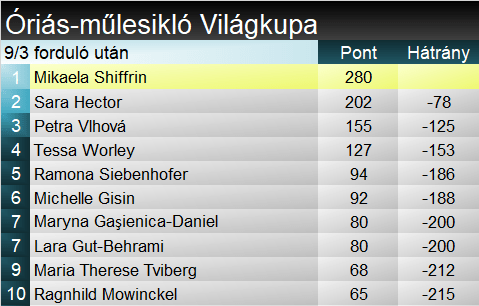 Hiába vagyunk túl még csak három szakági versenyen, Shiffrin máris tisztes előnnyel vezet a nagy riválisok előtt. Összetettben pedig úgy ver futamgyőzelemnyit Goggiára, hogy az elkövetkező három verseny szintén technikai lesz.