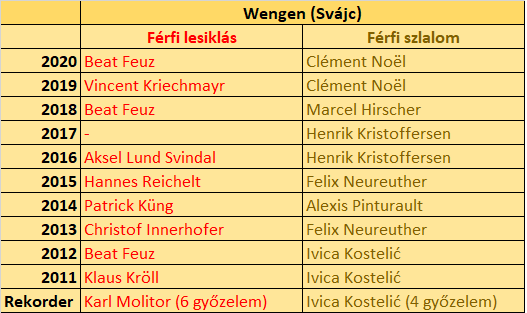 Habár Wengenről elsőre mindenkinek a lesiklás jut eszébe, a szlalomosok közt legalább ekkora presztízzsel bír a hétvégét záró műlesikló verseny. Habár a jelenlegi mezőnyből ketten is dupláztak itt, természetesen a nagy kedvenc, Ivica Kostelić 2011-es sikerét emeljük ki. Naná, hogy horvát kommentárral!
