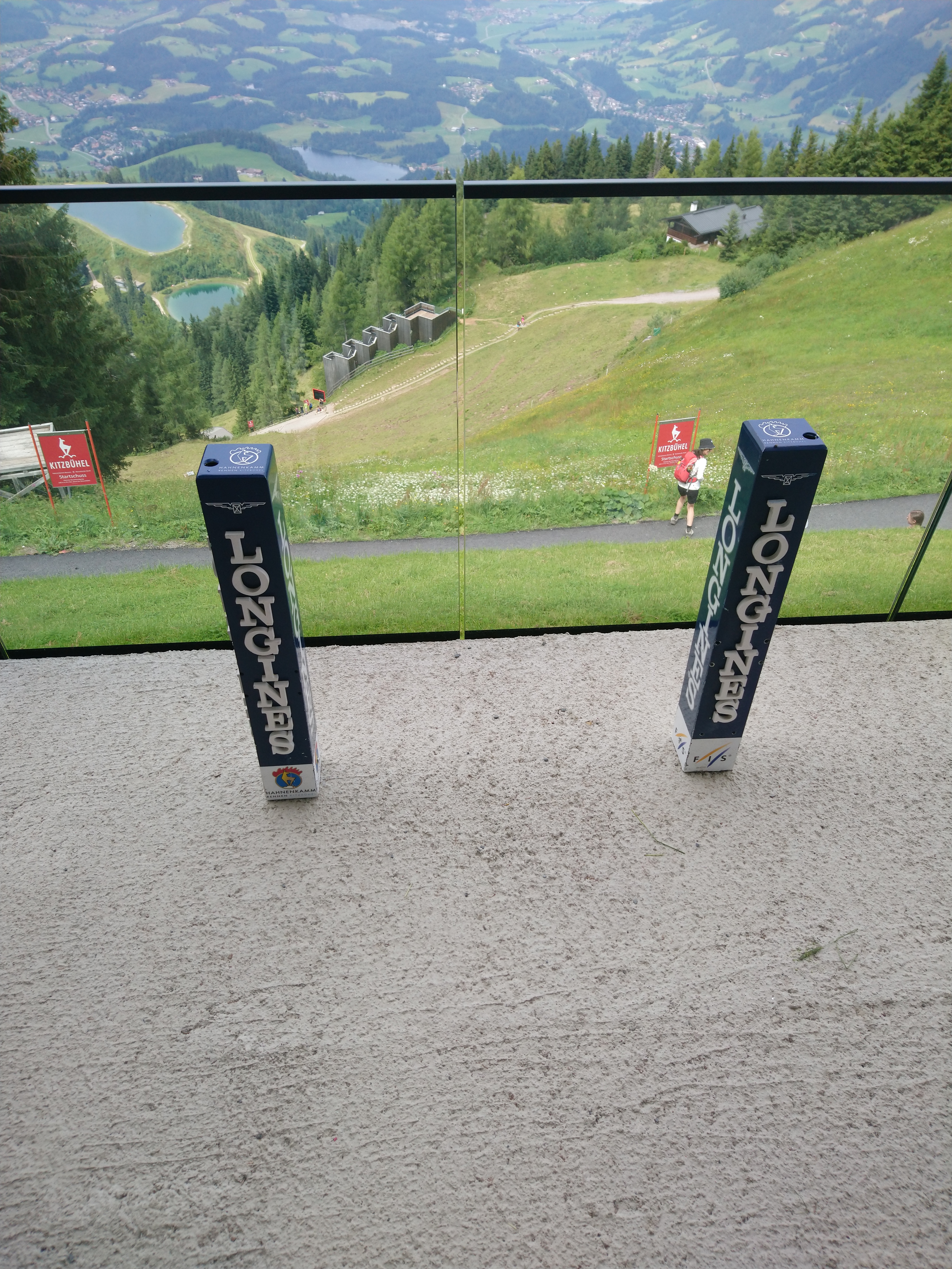 A sífelvonóval felérve már a startháznál találjuk magunkat. Az osztrákok megadják a módját, a hegytetőn minden a Hahnenkammrennenről szól. A rajtház nyáron egy kisebb kiállításként funkcionál, és egyben a Streifon végigvezető túraútvonal kezdőpontja is. A kitzi lesiklást teljesítő sízőket sokszor egytől egyig hősökként aposztrofálják, és ez a startvonalról lepillantva télen-nyáron érthetővé válik. Fentről nézve bele lehet szédülni a látványba: szinte függőleges lejtőre rugaszkodnak el a rajtból a lesiklók, közben pedig látszik a meredek hegy alatt elterülő város is a távolban.