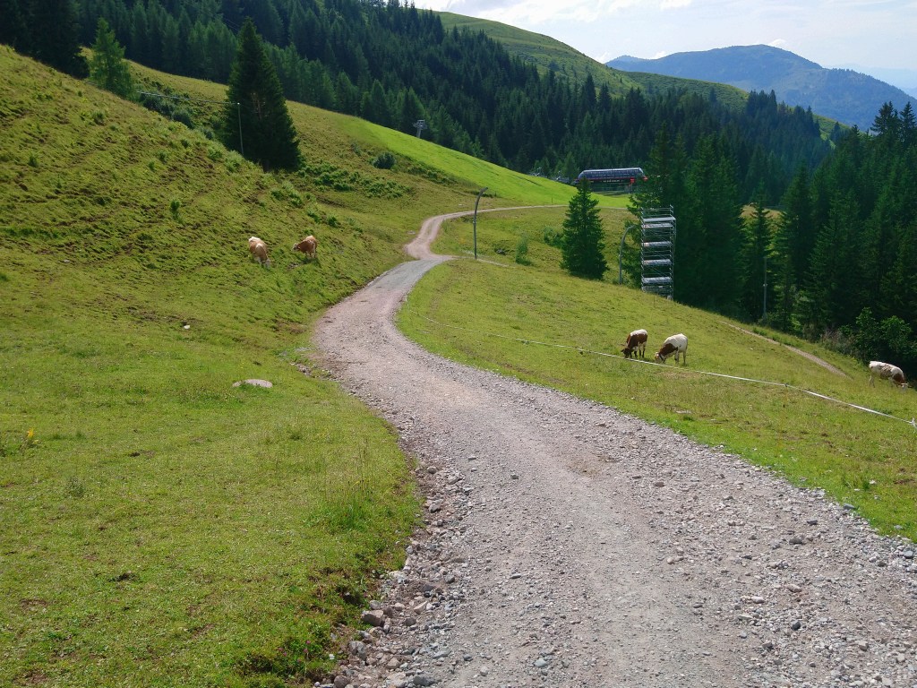 Így a gyalogút átvezet a Streifalmra, ami a pálya balján elhelyezkedő lejtő. Sokáig innen indult a péntekenként megrendezett szuper-G verseny, aminek a helyére idén egy újabb lesiklás került a programba. Az előzőekben írt mezőkön átvezető szakaszok telente a sízők terepe, de jegyezzük meg, nyaranta a túrázók csak vendégek az itt legelő tehenek közt. A nyakukba akasztott kolomp hangja végig kíséri a sétát, miközben az újabb és újabb nyílt, meredek legelőkre érve fel-felbukkan alattunk Kitzbühel látképe.