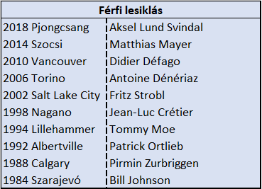 Talán az 1988-as Calgary-i olimpiáig kellene visszanyúlnunk az időben, ha egy topfavorit álmának beteljesülését szeretnénk felidézni, akkor és ott Pirmin Zurbriggen győzedelmesedett lesiklásban. Azóta olyan Világkupában nyeretlen outsiderek aratták le a babért, mint az osztrák Patrick Ortlieb, az amerikai Tommy Moe, a francia Jean-Luc Crétier, vagy a honfitárs, Antoine Dénériaz. Didier Défago és Matthias Mayer győzelme sem volt az a kiköpött papírforma, előbbi egy régi motorosnak számított a szakmában, aki nem volt a századok kegyeltje, az osztrák csak egy reményteljes tehetségként érkezett Szocsiba. Svindal pjongcsangi sikerét pedig egy életmű megkoronázásaként is felfoghattuk.