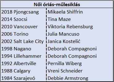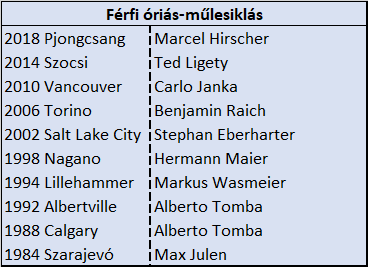 Mint a bajnokok listájából kiderül, óriás-műlesiklásban a korszakos zsenik nem maradtak arany nélkül. Talán Torinóig kell visszamennünk, amikor egy totális outsider, Julia Mancuso lepte meg a világot. Az megint más kérdés, hogy a szakágat érintő erőviszonyok olyannyira képlékenyek szoktak lenni, hogy igencsak bőséges élmezőny vág neki a mindenkori olimpiának éremszerzési eséllyel.